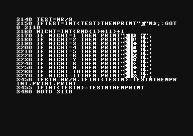 Danach baut sich eine Zahlenkolonne auf. Der Spieler muss nun das Symbol neben dem Ergebnis suchen und ganz wichtig: Intensiv an das Symbol denken... ... und siehe nach kurzer Zeit liest der C64 die Gedanken und liefert das Symbol auf dem Bildschirm.