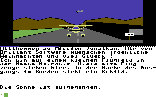 Mission Jonathan ist ein deutschsprachiges, illustriertes Textadventure aus dem Jahre 1985. Das Adventure besitzt eine Eigenzeit, d.h. Personen sind teilweise nur zu gewissen Zeiten erreichbar, gewisse Tätigkeiten können nur zu gewissen Zeiten gefahrlos ausgeführt werden, Verkehrsmittel fahren nur zu bestimmten Zeiten, Geschäfte sind nur zu gewissen Zeiten geöffnet, etc.