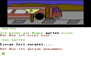 - alles Zeugs zur nächsten Haltestelle: (ziemlich zeitaufwendige Aktion), BUS WARTEN (solange bis Bus hier ist), BUS GEHEN, UHR LEGEN, BUS WARTEN (solange bis Bus hier ist), BUS GEHEN, ESSEN NEHMEN, BUS WARTEN (solange bis Bus hier ist), BUS GEHEN, GELD LEGEN, UHR NEHMEN, N