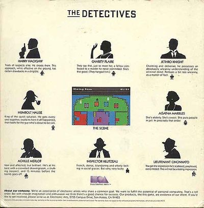Zur Auswahl stehen hierbei so schillernde Gestalten wie der leicht dusselige Inspektor Emile Klutzeau von der französischen Sûreté, der für seine "pragmatischen" Methoden gefürchtete Brutaldetektiv Harry Hacksaw oder die ergraute Kriminalschrulle Miss Agatha Marbles. Abhängig davon, welche Figur gewählt wurde, werden einige Aspekte des Spiels erschwert oder erleichtert - so ist Superhirn Humboldt Hause z.B. erstklassig im Auffinden von Spuren, während die weiblichen Reize von Charity Flair oftmals ausreichen, um ein männliches Gegenüber zu entlarvenden Aussagen zu bewegen. Ebenso hat jeder Detektiv ein gewisses Repertoire an Verhörmethoden. Diese können sich je nach gewählter Figur von einschüchternd über kumpelhaft bis "verwirrt" erstrecken und produzieren bei jedem Befragten andere Ergebnisse.