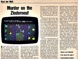 Murder on the Zinderneuf ist ein Krimi-Adventure von Electronic Arts im Multiple-Choice Stil mit Joysticksteuerung, das 1984 für den C64 portiert wurde. Ziel des Spiels ist es, innerhalb eines Zeitlimits einen Mordfall an Bord eines Zeppelins aufzuklären. Um dies zu bewerkstelligen, schlüpft der Spieler in die Rolle eines von acht möglichen Detektiven, um die verbliebenen Passagiere zu verhören und deren Kabinen nach Hinweisen und Beweisstücken zu durchsuchen. Ein Zufallsgenerator sorgt bei jedem Neustart für eine Neuverteilung von Täter- und Opferrollen sowie möglichen Tatmotiven und Hinweisen. Eine Partie dauert bis zu 36 Minuten.