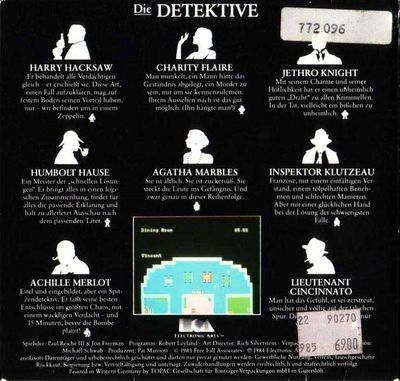 | Information | Erschienen bei Ariolasoft als Murder on the Zinderneuf - Der Fall Zeppelin | |