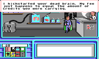 Nachdem Sie die das Chatsubo verlassen haben gehen Sie nach Osten (der obere Bildschirmrand ist Norden). Sie gelangen zu einem Body-Shop wo Sie Körperteile kaufen können wenn es wirklich schlecht um Sie steht, aber durch Verwenden von Save/Load kann dies umgangen werden Gegenüber befindet sich der Donut World wo sich ein Cop befindet. Weiter östlich befindet sich Larry Moe*s Microsofts Store. Er wird im späteren Verlauf des Spiels wichtig. Gehen Sie stattdessen ins Massage Parlor an der Ecke. Die junge Lady muss einiges von ihren Kunden erfahren haben, denn sie besitzt für Sie zu Beginn des Spiels wichtige Informationen.