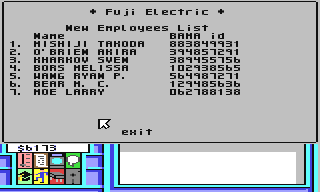 Loggen Sie sich bei SEA (Software Enforcement Agency) ein (Link = SOFTEN, Pw = PERMAFROST) hier können Sie sich Comlink 4.0 und Sequencer 1.0 downloaden und Coptalk auf Level 2 upgraden. Comlink 2.0 und 3.0 können gelöscht werden. Sequencer 1.0 erlaubt Ihnen in die Grundstufe einer Datenbank ohne Passwort zu gelangen. Probieren Sie es mit Fuji Electric aus. Logen Sie sich in FUJI ein, (der Begrüßungsbildschirm erscheint) klicken Sie auf das Inventory-Icon und dann auf Sequencer 1.0 und Sie erhalten das Passwort ROMCARDS für Level 1 der Datenbank. Logen Sie sich aus und wieder ein, verwenden Sie das decodierte 2.-Level Passwort (UCHIKATSU). Durchsuchen Sie die neue Personal-Liste, Sie werden herausfinden dass Larry Moe sich selbst einen Beraterjob gegeben hat. Schreiben Sie sich seine BAMA Nummer auf. Wenn Sie das letzte Memo lesen werden Sie feststellen das Tozuko Fuji mit krimineller Absicht übernommen hat. Tozoku ist ein neuer Name für Sie, also loggen Sie sich aus, gehen Sie zurück zu Julius Deane's Establishment und fragen ihn über "Tozoku". Er wird Ihnen den Link-Code geben
