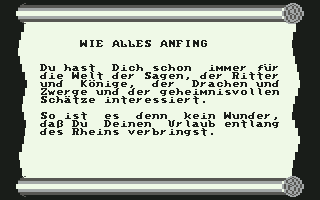 Nibelungen ist ein Adventure, das auf der gleichnamigen Sage basiert. Beim Besichtigen von Burgen und Schlössern am Rhein trifft der Spieler auf einen alten Mann, von dem er einen Ring und eine Schriftrolle erhält. Daraufhin wird der Spieler magisch in die Ritterzeit zurückversetzt und erlebt die Abenteuer von Siegfried und Kriemhild an deren Seite mit.