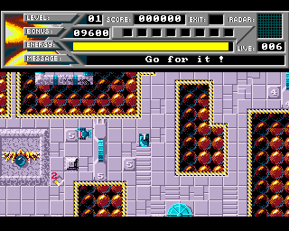 Nightdawn ist ein interessantes, kniffliges Arcadespiel, in dem Sie sich mit Ihrem Raumgleiter (sieht eher wie ein Panzer aus!) auf ein Plattformlabyrinth bewegen und innerhalb eines Zeitlimits (rücklaufende Bonuszeit) den Ausgang (gekennzeichnet mit EXIT) zu erreichen. Ebenfalls ist Ihr Energievorrat begrenzt, der zum Glück an Energiestationen aufgeladen werden kann. Zahlreiche Hindernisse wie Minen, Bomben, Laserstrahlen, Türe versperren Ihnen den Weg. Sie können Ihren Raumgleiter mit Extras ausstatten, die Ihnen helfen Hindernisse rechtzeitig zu beseitigen oder den Weg zum Ausgang leichter zu finden.