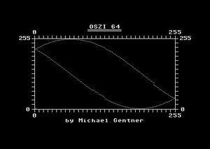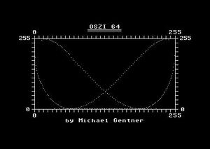 Das Programm "Oszi 64" verwandelt den C64 in ein Oszilloskop. Dabei werden zwei Signale auf dem Screen visualisiert: ein Signal bestimmt die X-Koordinate, das andere Signal die Y-Koordinate. Es gibt drei Betriebsmodi: