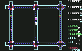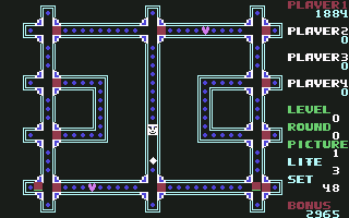 Das Spiel hat vier verschiedene Level-Aufbauten, die nach durchspielen des 4. Levels wieder von vorne durchlaufen werden. Dazwischen kommt allerdings ein Bonuslevel. In letzterem muss man innerhalb einer Zeitbegrenzung in einem Labyrinth umherirrende Punkte einsammeln. Erschwert wird die Aufgabe dadurch, dass ein Großteil des Labyrinths verdunkelt ist und nur in Abständen erhellt wird.