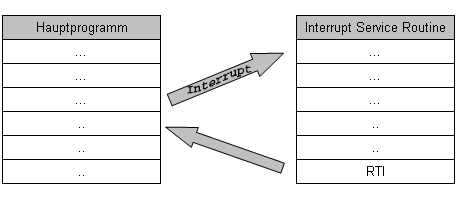 Der Programmierer muss darauf achten, dass alle Bytes, die in der Interrupt-Service-Routine auf den Stapel geschoben wurden, wieder entfernt werden müssen, bevor der Rücksprung mit RTI erfolgt.