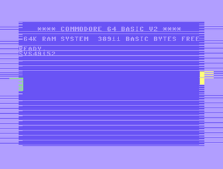 Die Rahmen links und rechts zu öffnen ist weitaus schwieriger, da unter anderem auch jedes angezeigte Sprite das Timing ändert. Um das Beispielprogramm nicht ausufern zu lassen, hier eines, das einfach abwechselnd zwischen 40-Zeichen-Modus und 38-Zeichen-Modus hin- und herspringt, um ab und an das richtige Timing zu erwischen. Man kann deutlich sehen, dass das eine Sprite links aus dem Rahmen herausragt und das andere rechts.