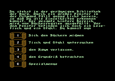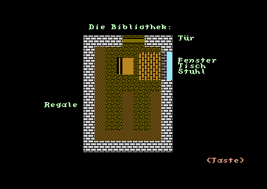Zur Bibliothek führt das rechte Treppenhaus. Dort das südliche Zimmer.