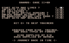 In der CSDb gibt es eine große Zahl von Cracks mit einer Trainerfunktion. Die vielfältigsten Einstellmöglichkeiten bietet die Version "Shames: Chase II +6D" von Nostalgia (erstes Bild der nachfolgenden Galerie).