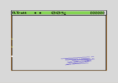 Auch in der Remember-Version (siehe POKEs und Cheats) bleibt noch mindestens ein Bug ungefixt. Wie man im folgenden Screenshot sieht, kann es - auch wenn es SEHR selten geschieht - vorkommen, dass das Programm die Fläche des Stix nicht sauber von bereits eingefärbten Flächen trennt.