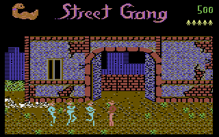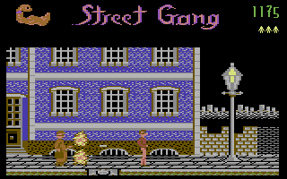Street Gang ist ein Beat'em Up aus dem Jahr 1987. Ähnlich wie bei Kung-Fu Master ist die Ansicht direkt von der Seite, man kann also nicht "in den Raum", wie bei anderen Beat'em Ups, z.b. Final Fight oder Renegade.