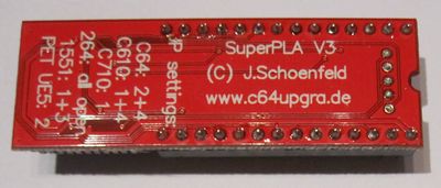 Bei der SuperPLA handelt es sich um ein Ersatzteil für die PLA des C64. Dieses von Jens Schönfeld entwickelte Stück Hardware gibt es einmal als "C64 only" Version, aber auch als Variante, die sowohl im C64 als auch in C16, plus/4, C116 und weiteren Commodore-Produkten eingesetzt werden kann.