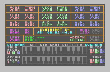 Synthimat ist ein Programm, das aus dem C64 einen polyphonen Synthesizer macht. Dabei werden die Möglichkeiten des SID Sound Chips ausgenutzt. Das Programm bietet einige Besonderheiten: