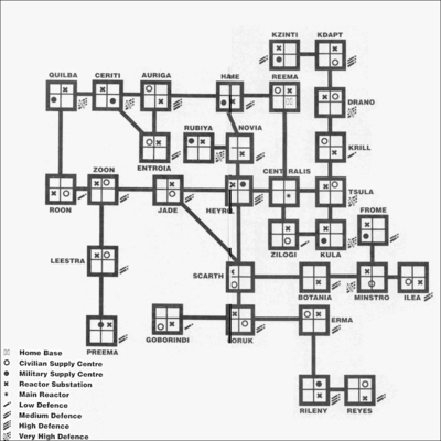 Reema ⇒ Hame ⇒ Auriga ⇒ Entroia ⇒ Ceriti ⇒ Quilba ⇒ Roon ⇒ Zoon ⇒ Leestra ⇒ Preema ⇒ Jade ⇒ Keyrol ⇒ Novia ⇒ Rubya ⇒ Scarth ⇒ Coruk ⇒ Goborindi ⇒ Erna ⇒ Rileny ⇒ Reyes ⇒ Botania ⇒ Minstro ⇒ Ilea ⇒ Frome ⇒ Zilogi ⇒ Kula ⇒ Tsula ⇒ Krill ⇒ Drano ⇒ Kdapt ⇒ Kzinti ⇒ Centralis