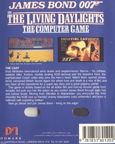 Im Bond-Film "Der Hauch des Todes" (engl. The Living Daylights) spielte Timothy Dalton zum ersten Mal diese berühmte Rolle. Unter dem englischen Originaltitel erschien das Spiel zum Film. In acht Level, die Szenen aus dem Film darstellen, versuchen Sie Bond durch eine von rechts nach links scrollende Landschaft zu steuern, in der sich allerhand Bösewichter verstecken und ihm aus sicherer Entfernung das Lebenslicht ausblasen wollen. Natürlich kann Bond zurückfeuern, sollte aber dabei keine Unschuldigen erwischen, da dies Punkteabzug bedeutet. Zusätzlich tauchen auch Hindernisse auf die übersprungen werden müssen. Neben seiner Pistole die er immer besitzt, kann sich Bond nach jedem Level eine Zusatzwaffe (oder Gegenstand) wie Bazooka, Granaten, Nachtsicht-Glas, Helm, Zigaretten!!, einen Ghetto-Blaster!!, usw. aus dem Arsenal von "Q" aussuchen. Eine dieser Waffen (Gegenstände) wird im nächsten Level unbedingt benötigt.