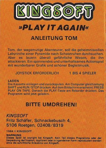 Tom ist ein Plattform-Spiel, das 1984 für den C64 erschien. Man steuert dabei Tom auf der Suche nach 54 Schlüsseln durch sechs Pyramiden, um an den Schatz von Pharao Manilo zu gelangen.
