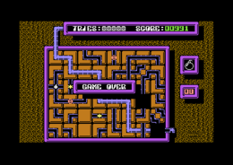 Gegenüber dem, was Sie bei "Tubyx" erwartet ist ein einfacher Wasserrohrbruch ein harmloses Problem. Eine Wasserleitung wird hier buchstäblich zerstückelt, und Ihre Aufgabe besteht darin dieses Chaos wieder zu ordnen. Sie müssen aber schneller denken und reagieren als das Wasser fließt, da es sonst zu einer Überschwemmung kommt. Ihr Werkzeug als Klempner ist natürlich keine Rohrzange, sondern ein Joystick in Port 2 Ihres C64