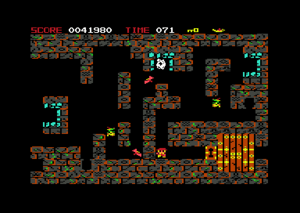 Die Labyrinth-Grafik ist passend in Multicolor umgesetzt. Es gibt einen veränderten Zeichensatz. Im Spiel gibt es nur Geräusche und am Levelende eine kleine Melodie.