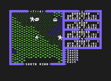 Die Karte umfasst etliche Bildschirme und ist übersät mit Wäldern in denen die Sicht eingeschränkt ist, sowie mit unüberquerbaren Gebirgen. Bevölkert wird das Land von Monsterhorden die früher oder später per Zufallsgenerator auftauchen und direkt auf die Abenteurergruppe zuhalten. Ihnen kann man meistens nur entkommen, wenn man beritten ist.