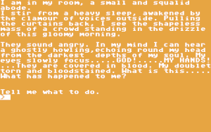 "Wolfman" ist das vierte Textadvanture aus der Horror-Serie von CRL und besteht wie die Vorgäger aus drei Teilen, wobei die Spielabfolge der Teile zwingend vorgeschrieben ist, da der zweite und dritte Teil jeweils ein Passwort benötigen, das im vorhergehenden Teil verraten wird. Bei wichtigen Begebenheiten wird teilweise ein Bild angezeigt, in dem es manchmal recht blutig zugeht. Sonst ist der Bildschirm reinen Text vorenthalten. Das Spiel bietet eine Spielstand-Speicher Option. Der Parser (das ist der Teil des Programms, der Ihre Tastatureingaben analysiert) ist relativ schnell, aber einfach aufgebaut. Anfänger könnten mit der Menge an Text Probleme bekommen. Mögliche Richtungsangaben und Auflistung der Gegenstände (falls welche zu sehen sind) sind im Text enthalten. Eine Zug- oder Zeitlimitierung, in derer man das Ziel erreichen muss, gibt es in diesem Adventure nicht, dafür aber zwei Irrgärten und einige deftige Rätsel.