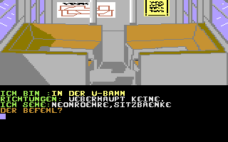 Allerdings sind der Speicher- und Ladevorgang unnötig kompliziert (mehrmaliger Tastendruck notwendig). Außerdem wird das Spiel, falls es vorzeitig endet (d. h. wenn man erwischt wird), von Anfang an neu geladen (Eine Möglichkeit, hier sofort einen Spielstand zu laden, sowie ein einfacher Lade- und Speicherbefehl wären komfortabler.). Zusammen mit dem etwas trägen Parser schränkt das alles den Spielspaß ganz schön ein. Man hätte vielleicht auf den technischen Schnickschnack verzichten und stattdessen ein längeres Abenteuer (mit einem etwas logischeren Schluss) programmieren sollen. Dennoch ist es gerade für Anfänger sehr geeignet."
